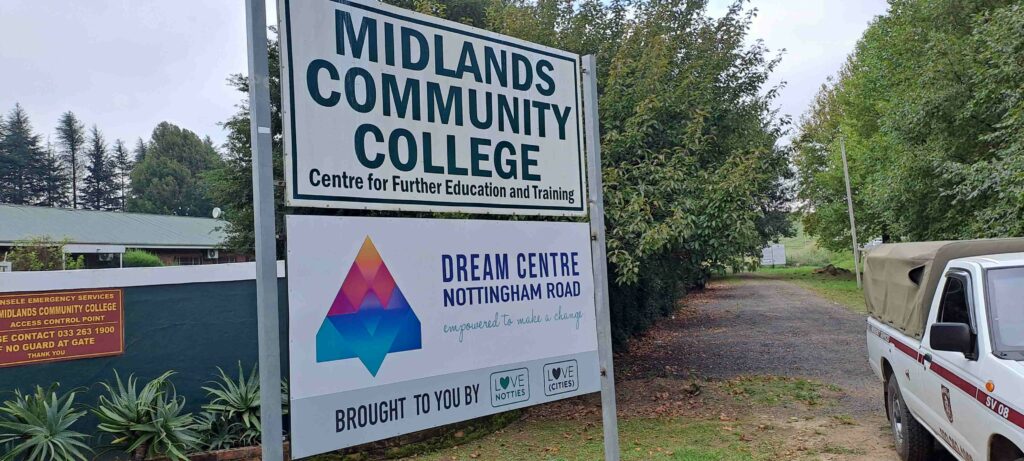 The college is at the entrance to Nottingham Road from the motorway side
