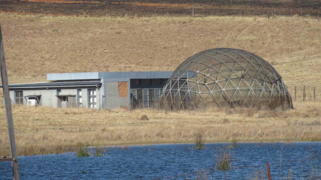 The geodesic dome once used for the rehabilitation of the cranes.