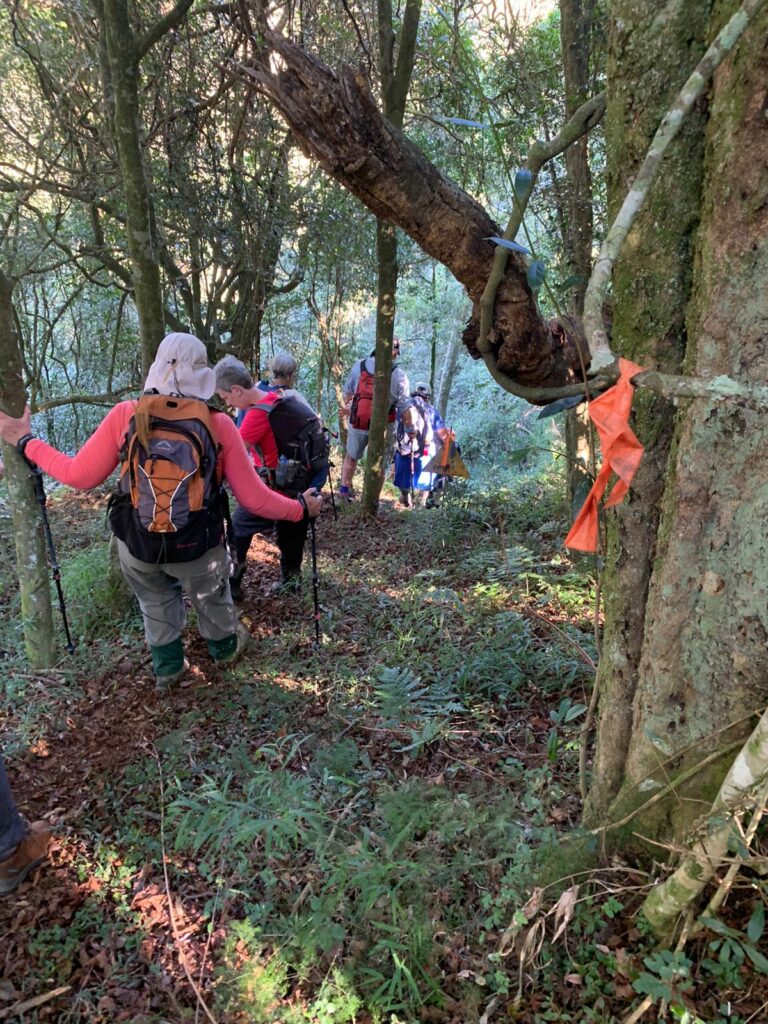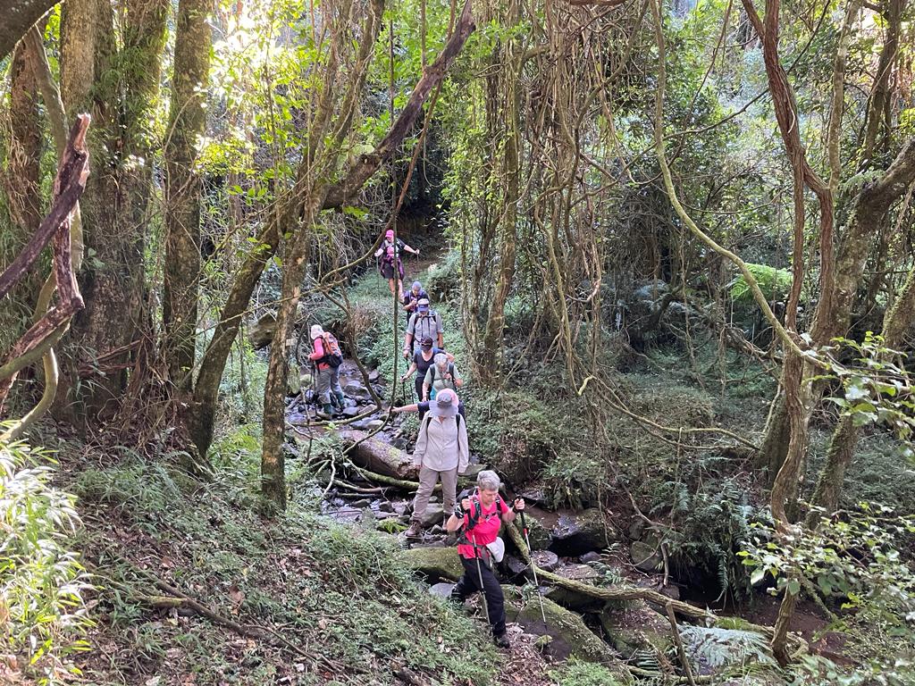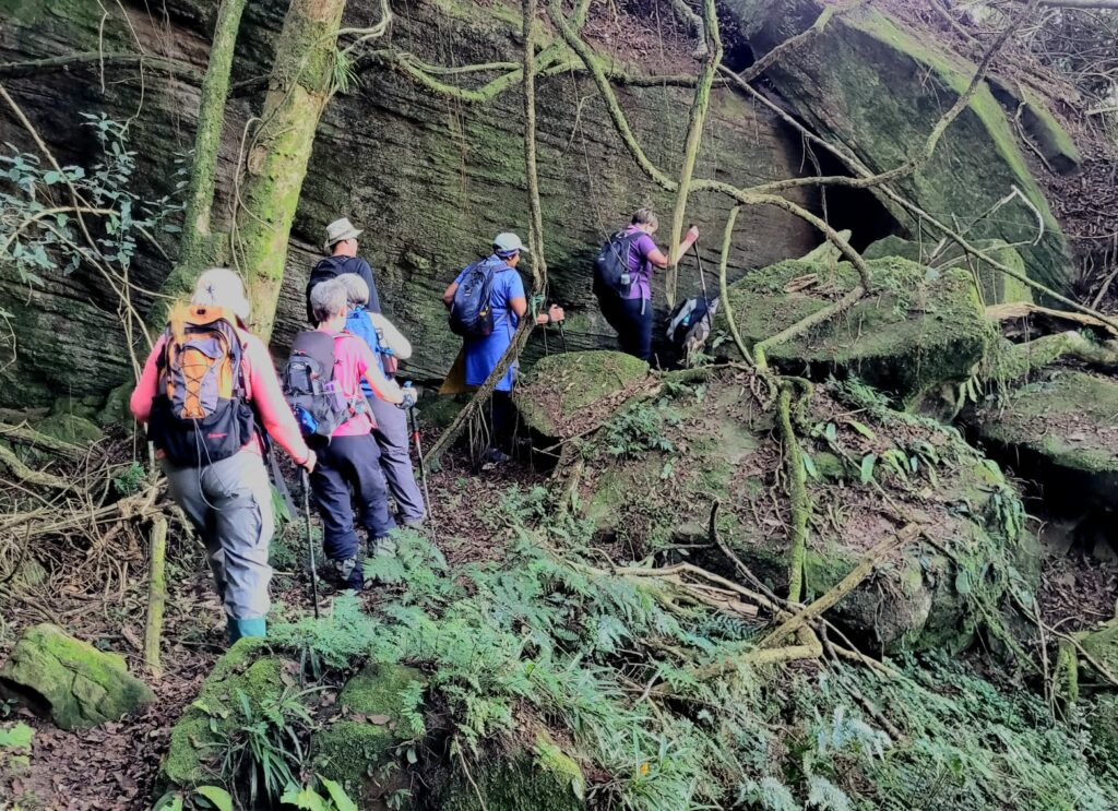 After a good chin wag and a stretch we donned our packs on again to start the second part of the hike into the indigenous forest. Surprisingly the trail was still quiet wet and slippery and one had to take caution not to slip on hidden roots and moss covered rock. This part of the trail has a different approach as it tests ones fitness levels but has some of the most amazing sites of rock cliffs, wild vines, fungus and wildlife.