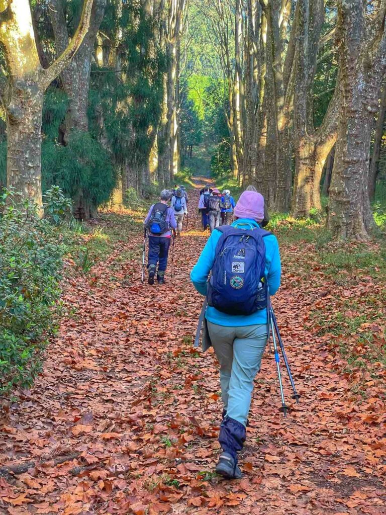 The first part of the walk takes us through London plain trees that are over a hundred years old that have showered the ground with leaves as winter sets in. The trail starts to climb from here onwards, with frequent brakes we ascend the 523m over 1.3km through the gum plantation before we broke out at the top onto grasslands.