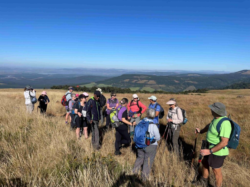 We all met up at the designated point on the P550, we then took a slow and dusty drive up to the Douglas Smith cottage and got ready for an exciting venture onto the Blinkwater mountain reserve. The reserve is run and maintained by a joint partnership with Ezemvelo KZN wildlife, SAPPI and Mondi. After a brief introduction, history lesson and a group photo we donned on our bags and we were off as the day started to warm up with lots of promise of amazing views