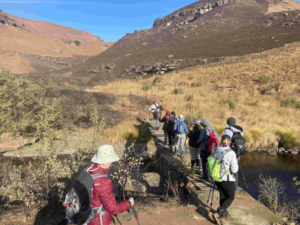 We crossed over the Bushman’s river on a sturdy wooden bridge after a steep downhill to the river.