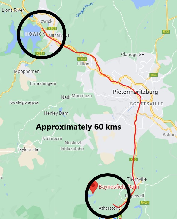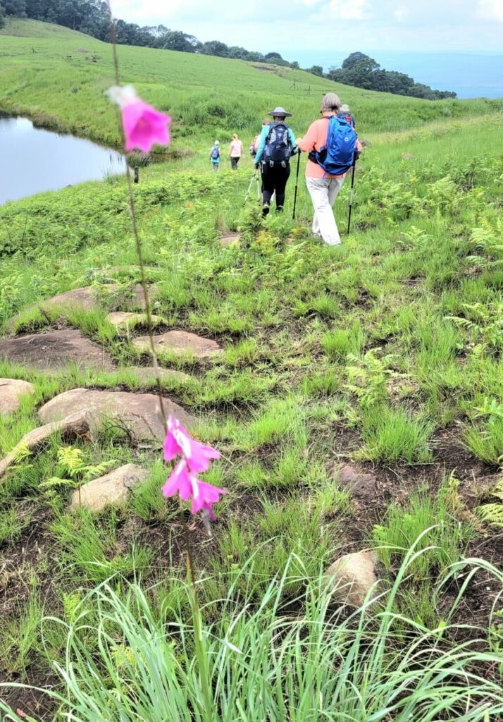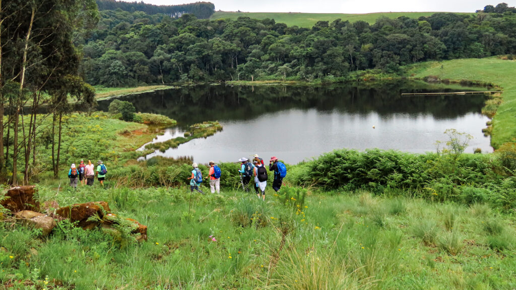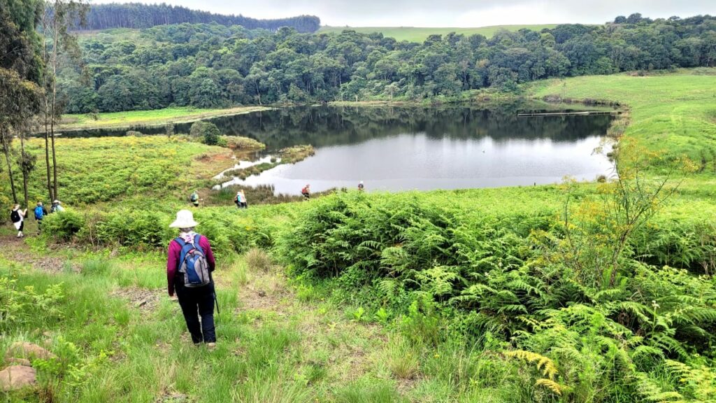 On exiting the forest, we still had to climb a few meters before descending towards MADWALENI DAM. This section of the climb was off path, you just had to figure out where is it safe to land your feet. Just before the top we were greeted by a herd of well nourished cattle. One would have hoped that when we reach the cottage there will be a braai. How can I forget the majestic views of Baynesfield that we were blessed with when we reached the top?