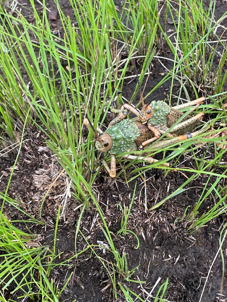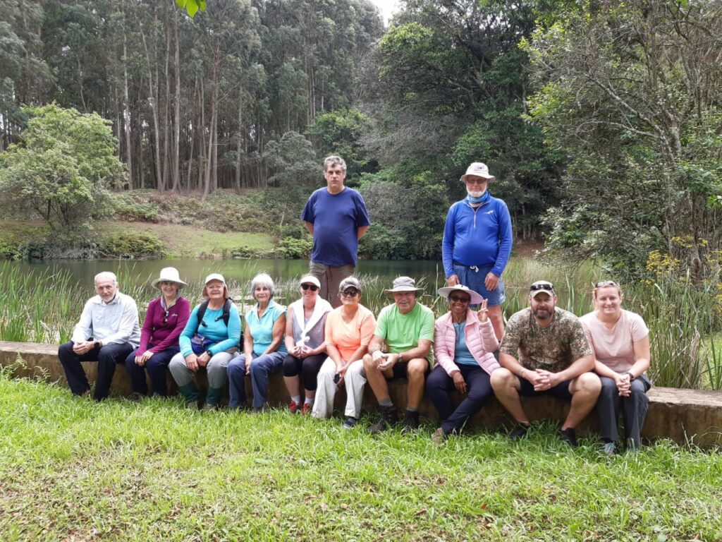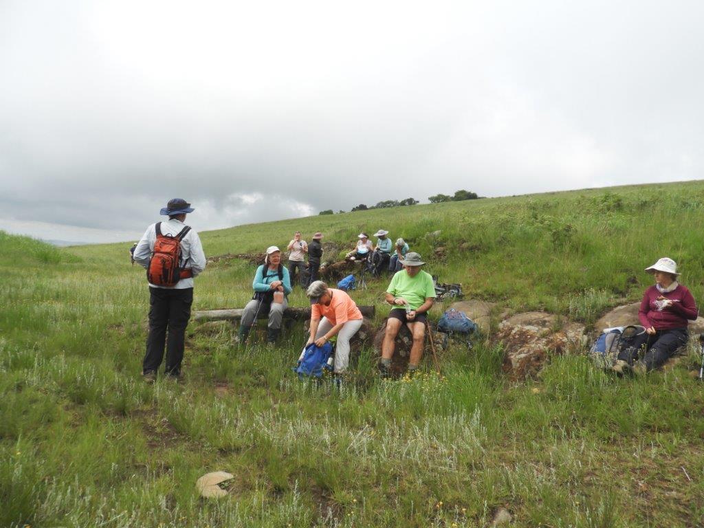 We then descended towards the dam. The descent was on an open field with beautiful flowers and some locusts having fun. I hope we did not disturb as we invaded their privacy. As we were carefully descending, there was a strong message that someone’s tummy was longing for a refuel. Obviously that climb did have an effect. On arrival at the dam, it was then agreed that we should have a snack break. Some of us decided to have lunch, though at 9:30am. Blame it on that steep climb.
