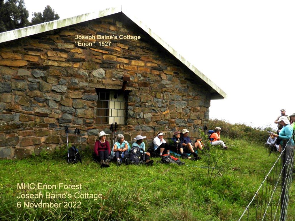 After the snack break we started another gentle climb to the top. This section was a mixture of trails and off path. We enjoyed taking in fresh air as we trot towards this solid stone structure- a house. It was not just a house. It has a very rich history. This was the JOSEPH BAYNES COTTAGE, built in the 1800s. Our hike leader Hettie asked us to sit down as it was story time. We all listened attentively as she was reading to us the history of Joseph Baynes. Well done Hettie on your research, we are now well informed.