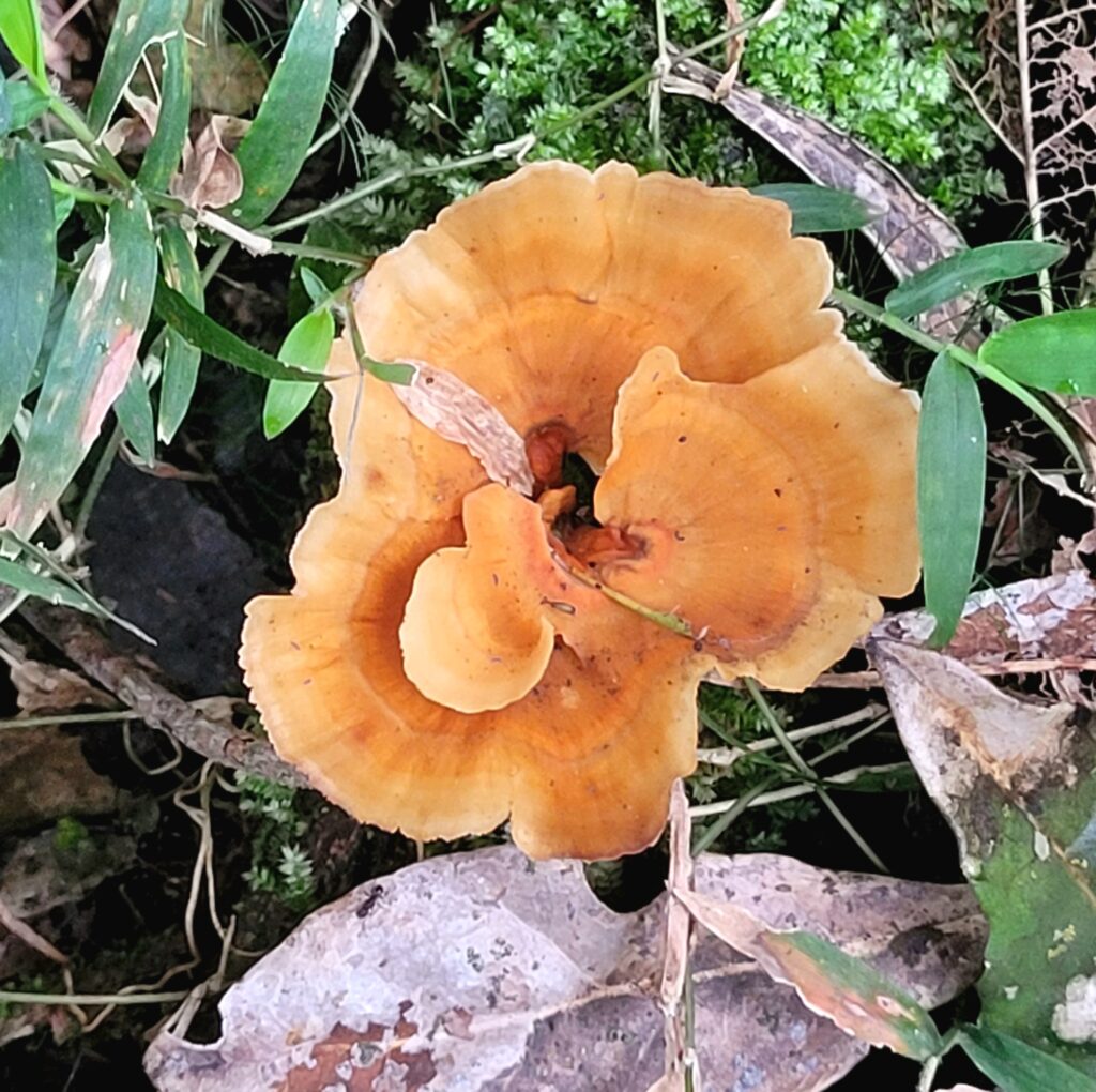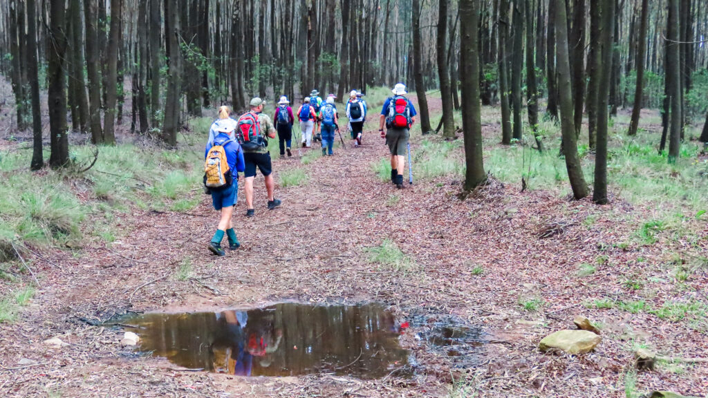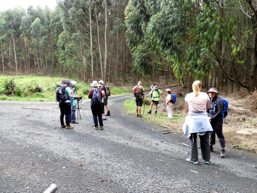 A group of 13 hikers started the day in the gum forest, on a wide gravel road gently meandering to the top, while admiring the beauty of the tall trees around us. At around 3km of the gentle climb, those of us who had extra layers of clothing, given the temperature of the day, started shedding off the extra layers. The humidity was recorded at 92%.