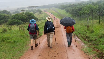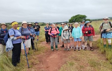 We were able to view the waterfall from the Butterfly Trail and had good sightings of butterflies, giraffe and zebra. The tea break was at the Rangers hut, where we were able to sit on logs in a circle – rather like having an “Indaba”.