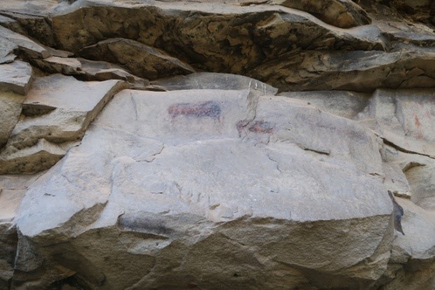Our first stop was at the water fall where once a year the Sangomas (spiritual healers) come and stand in the waterfall to be imbued by the spirits in the rituals they will be performing in the forthcoming year (pic 2). Closer inspection of the wall reveals some bushman paintings (pic 3)