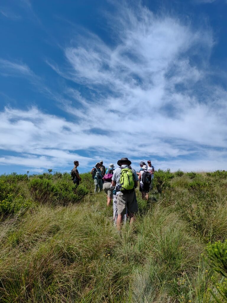 Then he blazed a trail, bundu bashing through long grass on a sunny hill slope. It was tough going, especially those with short legs, like a little Dutch lady we all know!