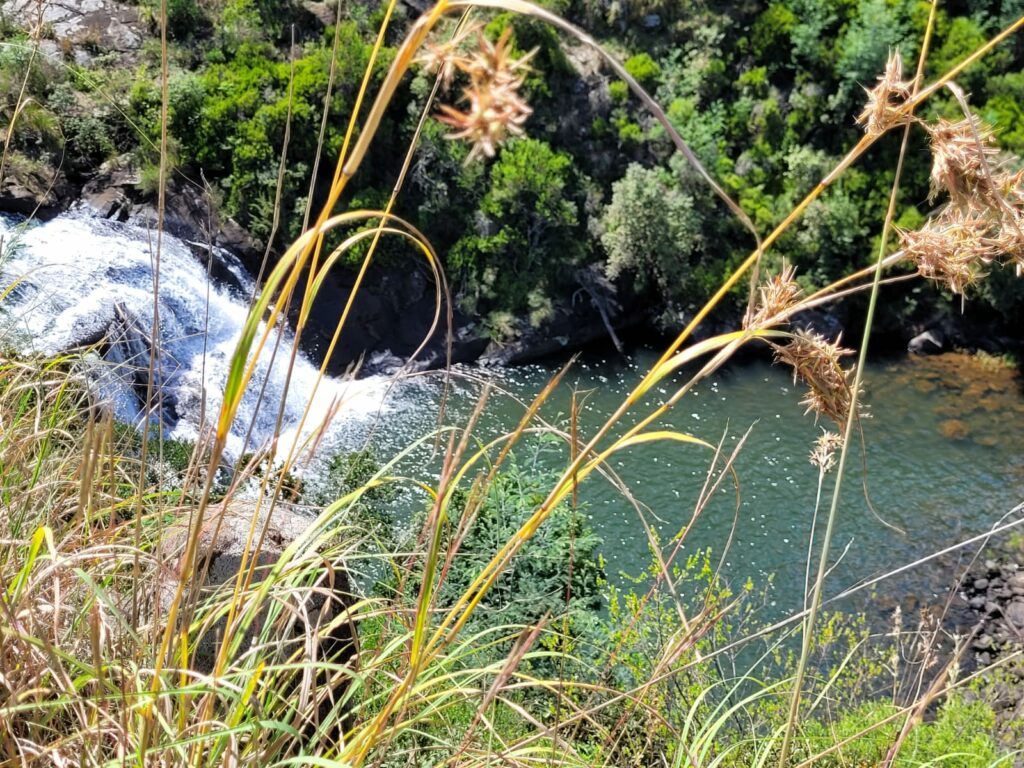 Our leader was Spamandla, a ranger who was in the anti poaching team. Fabio assisted. Spamandla led us on a hike to a waterfall, along an overgrown animal path alongside the river and beside a thick grove of wattle.