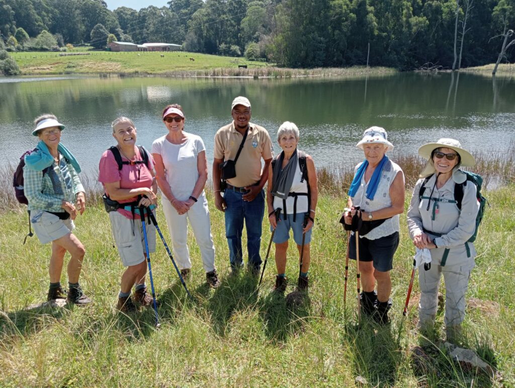 Tillietudlem – nature reserve, game and trout farm, conservation area, mist belt grasslands, bubbling streams, cool pools to swim in, serene dams, abundant flowers in spring, wild life and free roaming Nguni cattle, an old pioneer farmhouse and a fisherman’s lodge … it’s a remote farm in a valley off the Dargle valley. Oh yes, there is more, especially for the MHC hikers ….tea, coffee and scones on the wide deck of Hleka Manzi Lodge, the fisherman’s cottage.