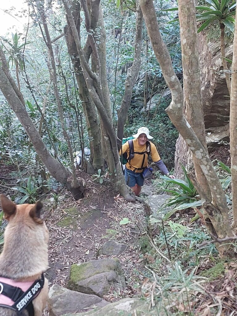 The path on the Dwarfs Dawdle was well maintained as were the bridges over the stream and the ladder to the top. Ali, who had her dog with her, met us when we emerged at the top of the ladder – Willow would not have been able to climb the ladder.